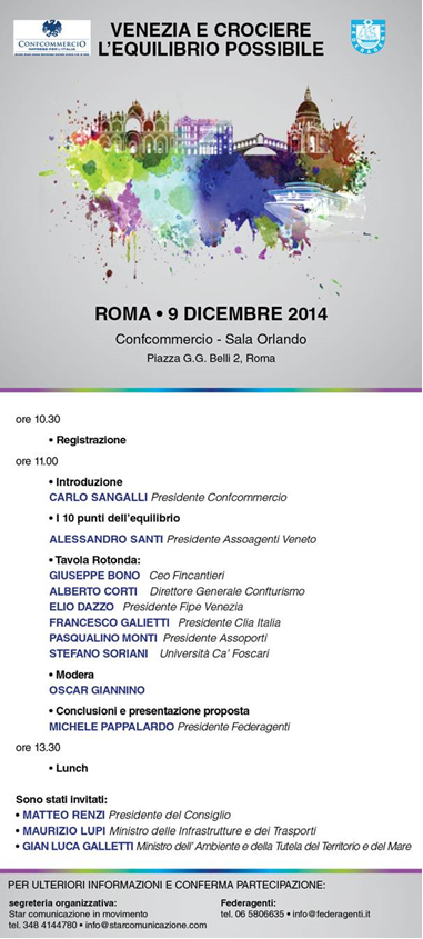 Si svolge alle 10:30 a Roma, presso la sede di Confcommercio in Piazza G.G. Belli 2, il convegno sul tema “Venezia e Crociere, l’equilibrio possibile”.